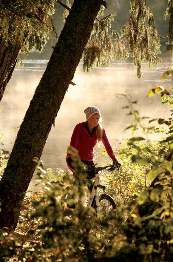 CYKLING Den första leden är från början en vandringsled på cirka en mil. Gruvbergsleden startar vid sydsidan av Öjeberget och bjuder på varierat underlag; skogsbilväg blandat med singeltrack (en vanlig hederlig stig). Först passeras små byar och sedan öppnar sig vyerna med vidsträckt utsikt över Ljusnandalen. Pulsen har precis börjat stiga när grusväg tar vid och de gamla gruvhålen passeras. Däcken knastrar mot gruset, vinden leker i håret och fåglarna dyker efter insekter. Solen står högt på himlen.