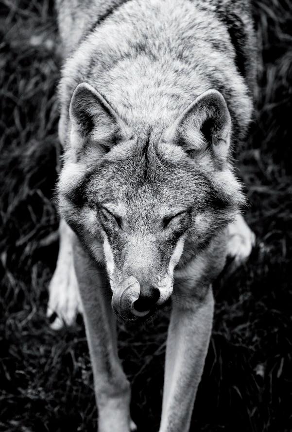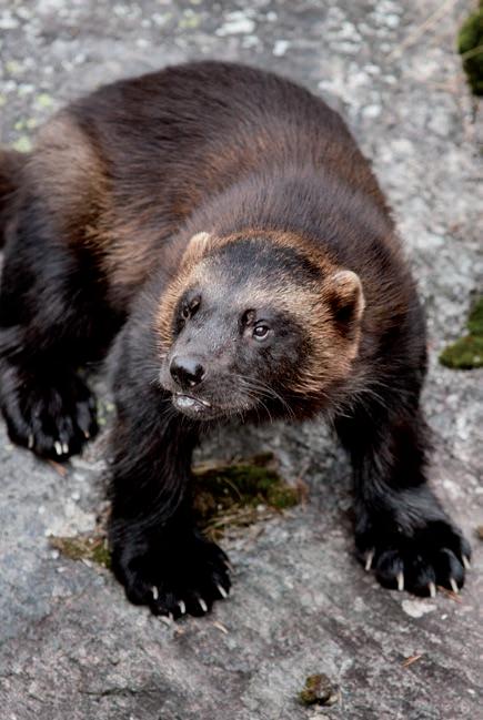 Järven kommer också fram. Han hänger först i ett träd och mumsar på ett älgben men kom-