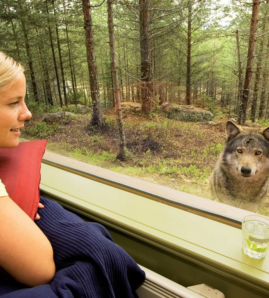 Bo på vårt unika varghotell med vargar utanför fönstret.