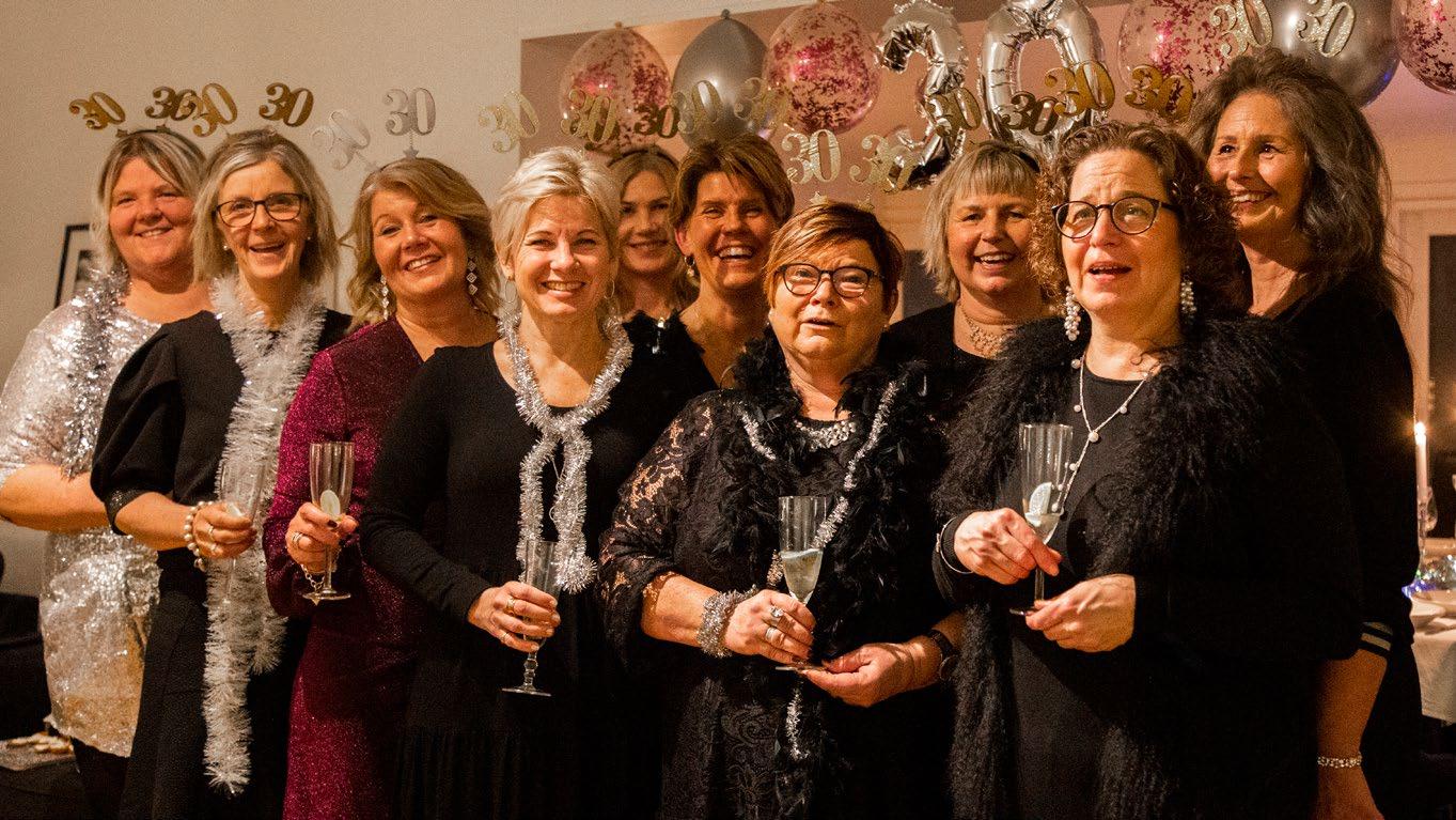 I 30 år har de nu umgåtts och genom åren har de utöver vinlotteri och middagar gjort resor tillsammans. Bland annat har de varit på skidresa till Hassela och åkt ner till Stockholm för att gå på teater. Till en början var det fika som gällde på träffarna och både barn och även männen fick vara med ibland. – Nu är det så kul så nu brukar de umgås lite för sig själv, det är en väldig sammanhållning, säger Marie Olofsson.