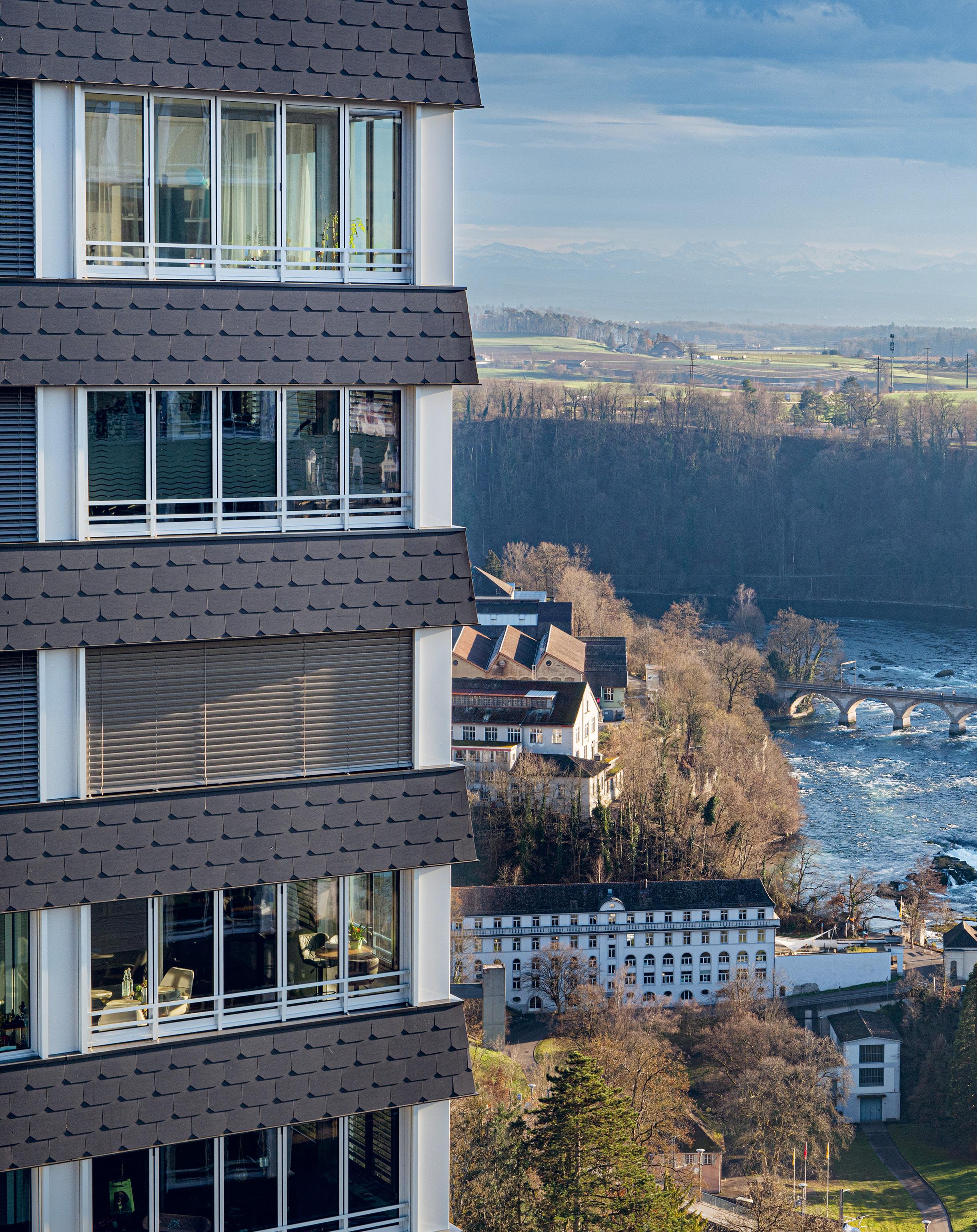 Ein Belvedere über dem Rheinfall / Un belvédère sur les chutes du Rhin Mit Blick auf ein Naturschauspiel: das Rhyfall Village in Neuhausen / Avec vue sur un spectacle naturel: le Rhyfall Village à Neuhausen
