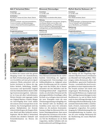 ca. 600 Mio. CHF Burckhardt + Partner AG, Bern / Basel / Zürich 46 000 m2 Verkaufs- und Gastronomieflächen, 10 000 m2 Freizeit, 100 Mietwohnungen, 10 000 m2 Hotel und Dienstleistungsflächen