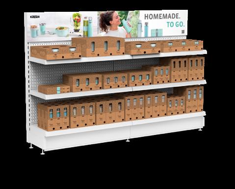 winkelpresentatie die het ‘To Go’-aanbod helemaal tot zijn recht laat komen. De presentatie bestaat in één en twee meter opstelling en kan je bestellen via je salescontact. Daarnaast is er een ‘ Floor Display ’ (ref.00297797) in karton om het totaalconcept visueel aantrekkelijk te presenteren. En zijn er drie kleinere counterdisplays, de ‘ For Breakfast ’ For Office ’- display en For Outdoors ’- display waarmee je een bepaald deel van het assortiment kunt uitlichten. Tot slot werd er ook aan twee ‘To Go’ demomodules gedacht, waarbij het product zonder verpakking wordt gepresenteerd. De ‘ Eat To ’ (ref. 00297795) en de Drink To Go’ (ref. 00297796).