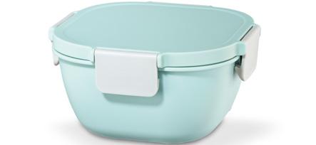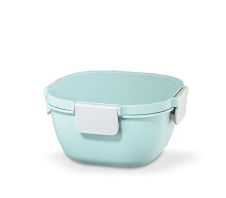 Kies je voor een broodje en een vers slaatje? De handige ‘ Bento-Box ’ (ref. 00181595) bestaat uit twee stapelbare lunchboxen met een inhoud van 500ml die samengehouden worden met een elastische riem. De ‘ Saladebox ’ (ref. 00181584) met een inhoud van 1,4l komt compleet met bestek, een handige verdeling van 400ml en een dressing-compartiment van 80ml. En geeft je de mogelijkheid om te genieten van een lekkere frisse salade. Uiteraard is deze smaakvolle box vaatwasser- en