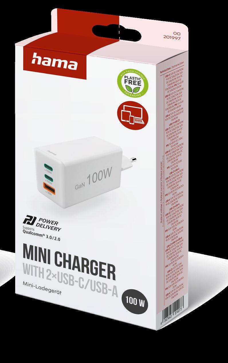 Dankzij hun krachtige output bieden de Hama driepoortsladers heel wat mogelijkheden. Deze laders zijn GaN-laders om ze naast een hoge output ook compact te houden. Ze bestaan in drie uitvoeringen: de 45W Fast GaN mini charger (ref. 00201995) met één USB-C-poort en twee USB-A-poorten. De 65W Fast GaN mini charger (ref. 00201996) met tweeUSB-C- en één USB-A-poort. De krachtpatser in deze reeks is de 100W Quick GaN mini charger (ref. 00201997) met twee USB-C- en één USB-A-poort.