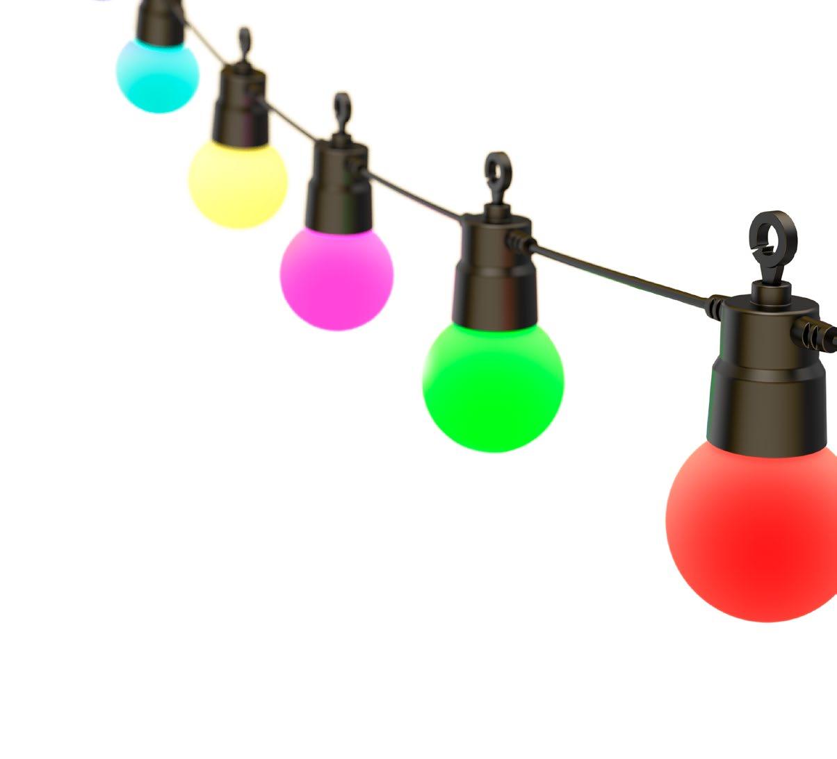 Naast de eerder klassieke lampen is er een nieuwe telg in het assortiment: een slimme led-lichtketting (ref. 00176636). Barbecue-avondje of tuinfeest: de outdoor-lichtketting zorgt voor een perfecte lichtsfeer op balkon, terras en binnenplaats. Bovendien is met beschermingsklasse IP44 de led-lichtketting beschermd tegen spatwater uit alle richtingen.