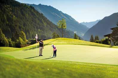 Im Zentrum des Camps steht der auf 1.300 Metern Seehöhe gelegene 9-Loch-Par-3-Kurs im Defereggental Golf Park, direkt neben dem Hotel. Er ist einer der schönsten Kurzplätze Europas. Die Bahnen sind sanft modelliert, leise rauscht der Gebirgsbach, beinahe zum Greifen nah ist die imposante Bergwelt des Nationalparks Hohe Tauern.