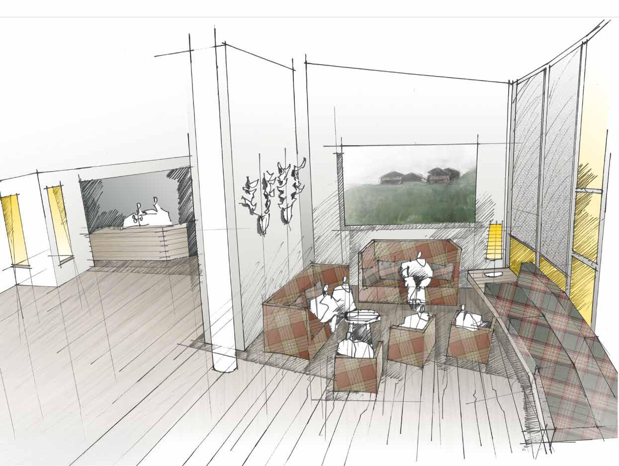 und entführt sie in eine Welt der Harmonie. Der klassischalpine Stil ist mit zeitgemäßem, modernem Design gemischt. Natürliche Materialien und edle Wollstoffe mit klassischen Karo-Mustern knüpfen an die Gestaltung der bereits renovierten Zimmer an und schlagen eine Brücke zwischen den öffentlichen und privaten Bereichen.