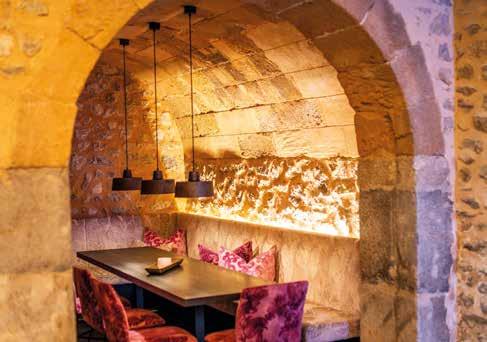 Edle Möbel wie das hochlehnige Ghost 18-Sofa der italienischen Designmanufaktur Gervasoni prägen den neuen Look und stehen im Zentrum von Bar, Lobby und Vinothek. So sind kleine Rückzugsorte für ruhige Momente entstanden. Sie setzen neue Akzente und sorgen zugleich für eine entspannte Atmosphäre, in der man gerne ein gutes Glas Wein trinkt und den Abend vor knisterndem Kaminfeuer verbringt.