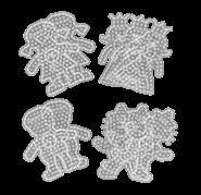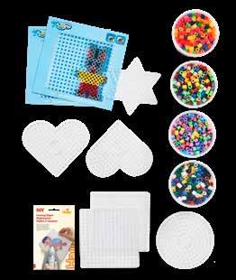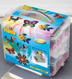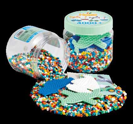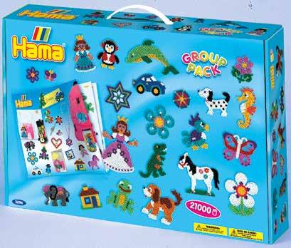 Inhalt: Ca. 21.000 Perlen, 21 Stiftplatten: 1 Stck. von je: Kleine viereckige Nr. 220, kleine sechseckige Nr. 223, kleine herzförmige Nr. 236, Prinzessin Nr. 258, kleine sternförmige Nr. 270, Pferd Nr. 281, Hund Nr. 287, Schmetterling Nr. 298, Blume Nr. 299, Delfin Nr. 300, Auto Nr. 311, Seepferdchen Nr. 313, kleiner Elefant Nr. 319, Papagei Nr. 320, Pony Nr. 321, Dinosaurier Nr. 322, kleiner Frosch Nr. 324, kleiner Pinguin Nr. 325, kleiner Hund