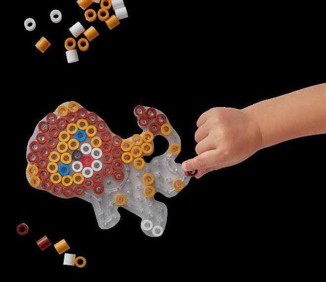 Gestalten Sie Ihr eigenes Muster. Das Werk nimmt Gestalt an, indem man die Hama-Perlen auf der Stiftplatte platziert. Sie können eine Stiftplatte mit Vormotiv verwenden, um eine bestimmte Form zu kreieren, oder mithilfe einer unserer allgemeinen Formen – und mit Fantasie – Ihr ganz eigenes Werk erschaffen.