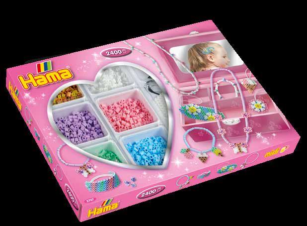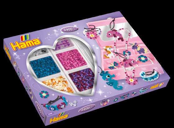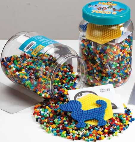 Inhalt: Ca. 4.000 Perlen, 2 große viereckige Stiftplatten Nr. 234, 2 Hama Juwelen, Motiv-Vorlage, Anleitung und Bügelpapier.