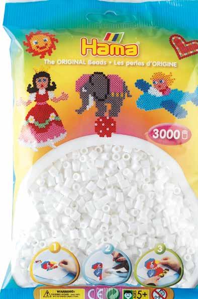 Inhalt: Ca. 6.000 Perlen, 3 große sechseckige Stiftplatten Nr. 276, 4 Hama-Verbinder, Motiv-Vorlage, Anleitung und Bügelpapier.