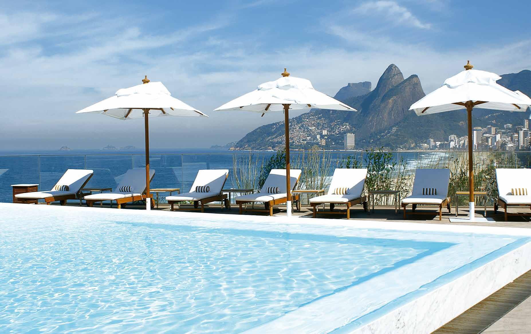 The rooms are minimalist, with works by Brazilian artists, and have frosted glass doors and wooden shutters that insulate against external noise. Trousseau produced the bed linen, especially for the development, which also has a wonderful spa by L’Occitane au Brésil.