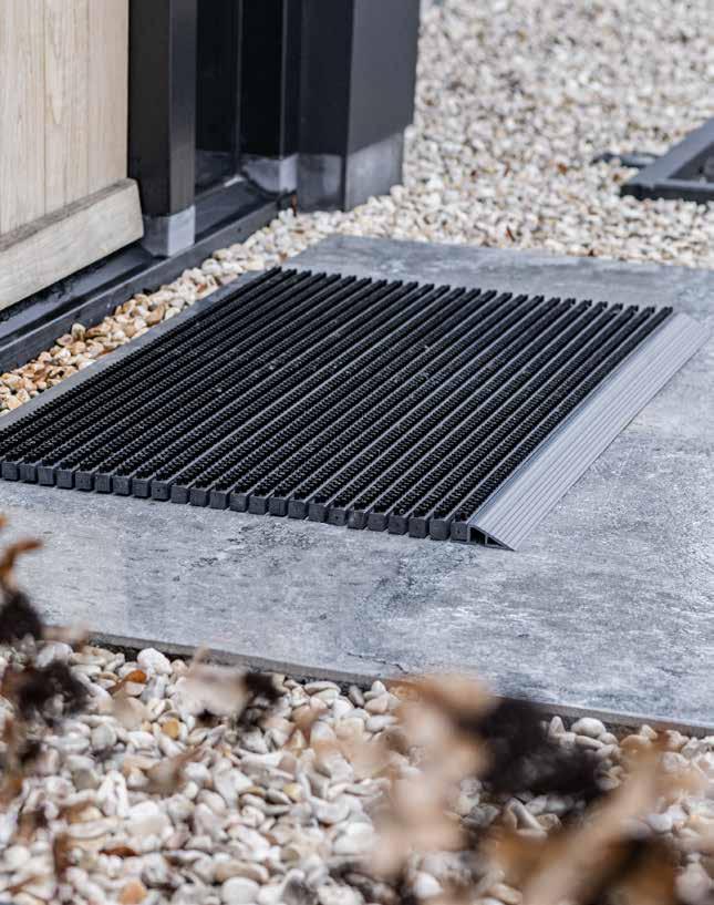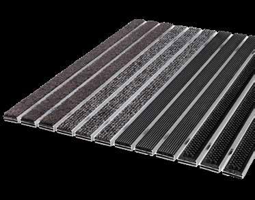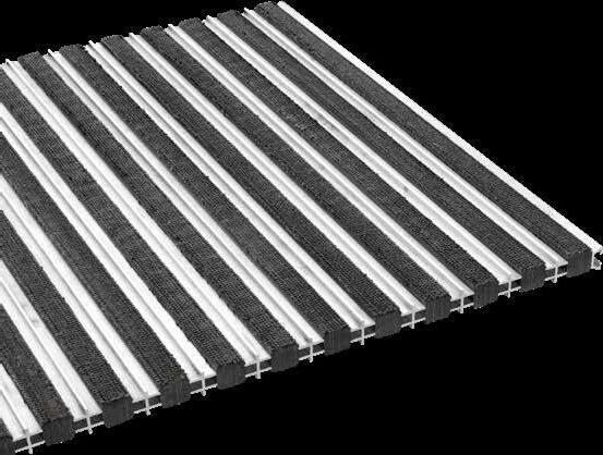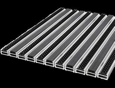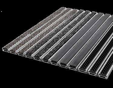 Virtually any size possible in 4 mm profile distance, suitable for a depth of 25 mm, traps dirt before entering crowded buildings such as schools, offices, shopping malls, official buildings, etc. Easy to clean.
