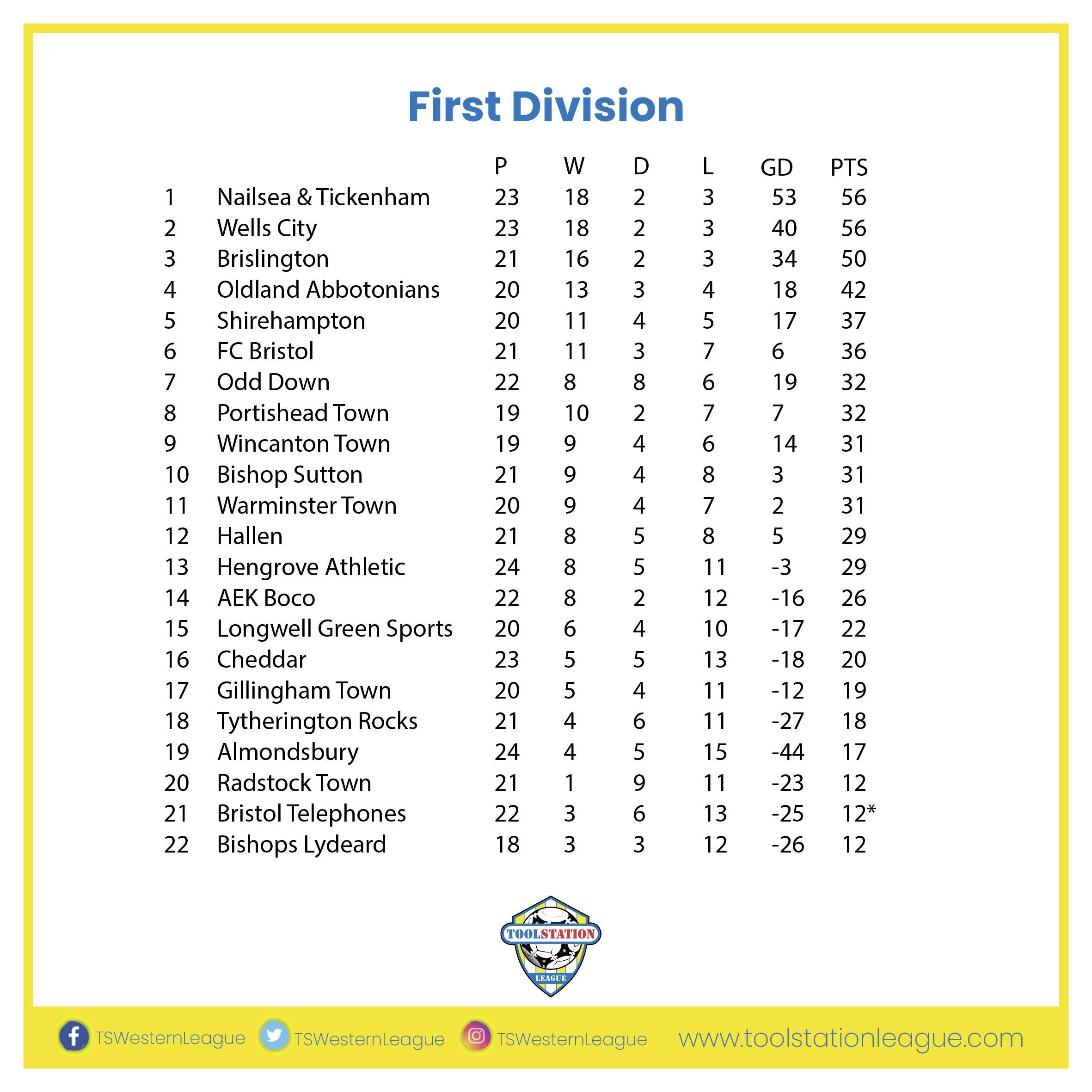 Friday 2nd December 2022 FA Vase Bridgwater United v Cribbs Premier Division Welton Rovers v Cadbury Heath First Division Longwell Green Sports v Hallen Warminster Town v Shirehampton Wincanton v Tytherington Rocks Saturday 3rd December 2022 FA Vase Buckland Ath. v Laverstock & Ford Clevedon Town v New Milton Town Premier Division Ashton & Backwell v Sherborne Barnstaple Town v Helston Athletic Mousehole v Keynsham Town Saltash United v Ilfracombe Town Shepton Mallet v Millbrook Torpoint Athletic v Falmouth Town Wellington v Street First Division AEK Boco v Brislington Bishop’s Lydeard v Oldland Abbots Bristol Telephones v Almondsbury FC Bristol v Wells City Gillingham v Nailsea & Tickenham Odd Down (Bath) v Cheddar Portishead Town v Bishop Sutton Radstock Town v Hengrove Athletic