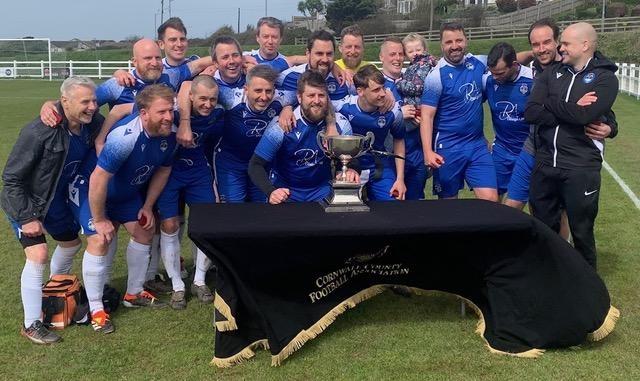 Turning the attention away from Toolstation Western League action, congratulations to Helston Athletic Veterans who earlier this month won the Cornwall FA Sunday Cup for a second time in three seasons. In the final held at Perranporth FC in extremely windy conditions The Blues held a two goal advantage at the break. This was extended midway through the second half before opponents Speak Out United pulled one back. Helston however held firm to ensure they went on to lift the trophy (pictured)