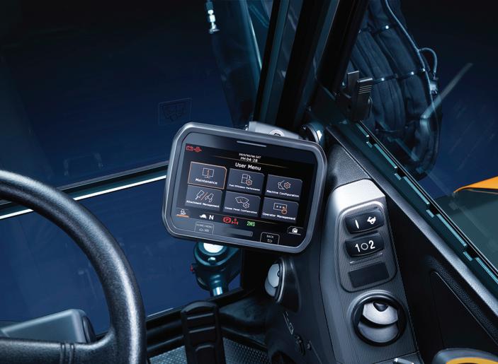 The engine develops 75kW (100hp), with 460Nm of torque available from just 1,400rpm. It employs a variable pressure turbocharger, delivering optimal air flow to the engine under all load conditions. Like on heavy excavators, operators can choose from three power modes: power, standard and economy.