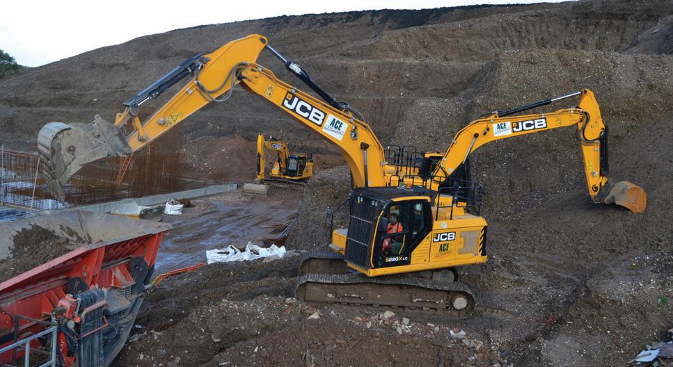 The full range of Ace Liftaway recycling services comes together as a one-stop-shop for its clients and JCB is central to its processes, with recent investments including 2 x 150X and 3 x 220X excavators as well as two 437 wheeled loading shovels, and a JS145W wheeled excavator with high rise cab. There’s also a 456 shovel hard at work, a 722 ADT and 560-80 Loadall, as well as Teletruk forklifts with telescopic boom.