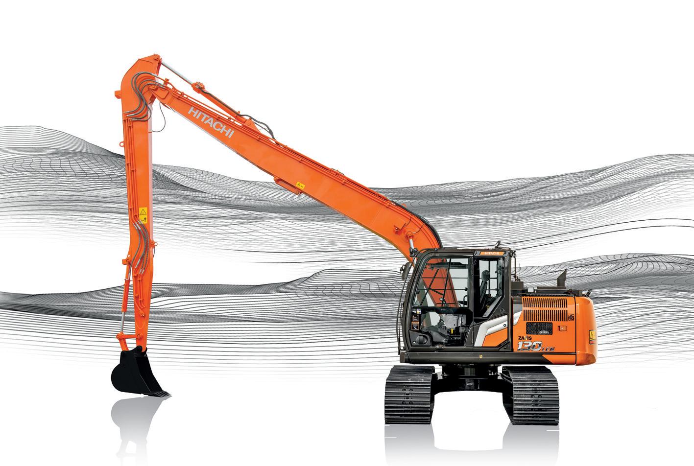 The ZX130LCN-7 HE13 super long front (SLF) excavator has a 13m reach and is ideal for dredging rivers and lakes, bank maintenance and slope-finishing tasks. The 13-tonne Stage-V compliant Hitachi machine benefits from the HIOS V hydraulic system which helps to deliver up to 9% less fuel consumption than the previous model.