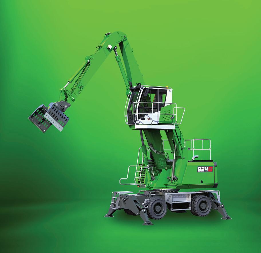 The “Green Heart of bauma” belonged to Sennebogen in 2022 with two batterypowered machines both in the crane and in the material handling area – the 30-t 825 Electro Battery recycling material handler and the 50-t 653 Electro Battery telescopic crawler crane. A Dual Power Management System permits both battery-powered and mains-powered operation.