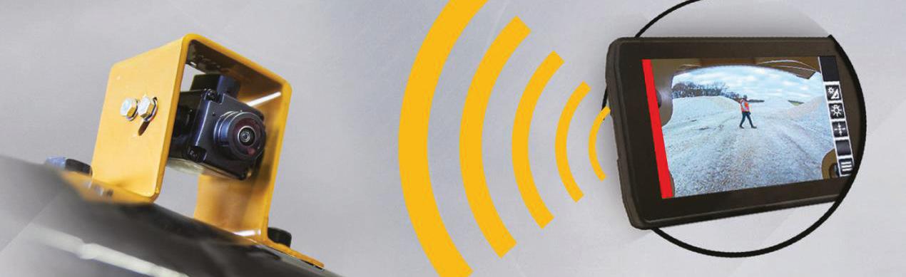 The system includes a single rear-facing camera and a 10-inch highresolution touchscreen display with smart detection. It allows operators to zoom in and has a 170-degree field of vision with target areas set at 20, 10, and 5m, each relating to different colour zones and risk levels.
