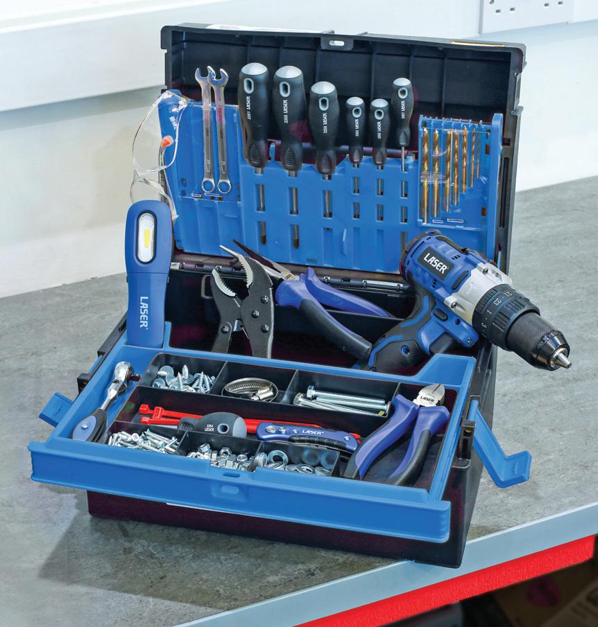 Stylish yet durable, the organiser toolboxes from Laser Tools are designed for carrying hand tools, cordless power tools, drill bits, sockets and consumables. The 380mm-wide model dispenses a fold-down tool organiser for drill bits and screwdrivers and a slideout removable tray for smaller tools, screws, nuts, and bolts. The larger 500mm box includes a slide-out organiser suited for drill bits, hex keys, and more, along with the removable tray for holding smaller tools, screws, nuts, and bolts. Manufactured from impact-resistant polypropylene, both boxes stand firm on non-slip rubber feet. The smaller box measures 380 x 270 x 220mm, while the larger one spans 500 x 290 x 240mm. For extra security, the lids accommodate a padlock hole, with suitable padlocks being the Laser 0496 (25mm) or 0497 (30mm).