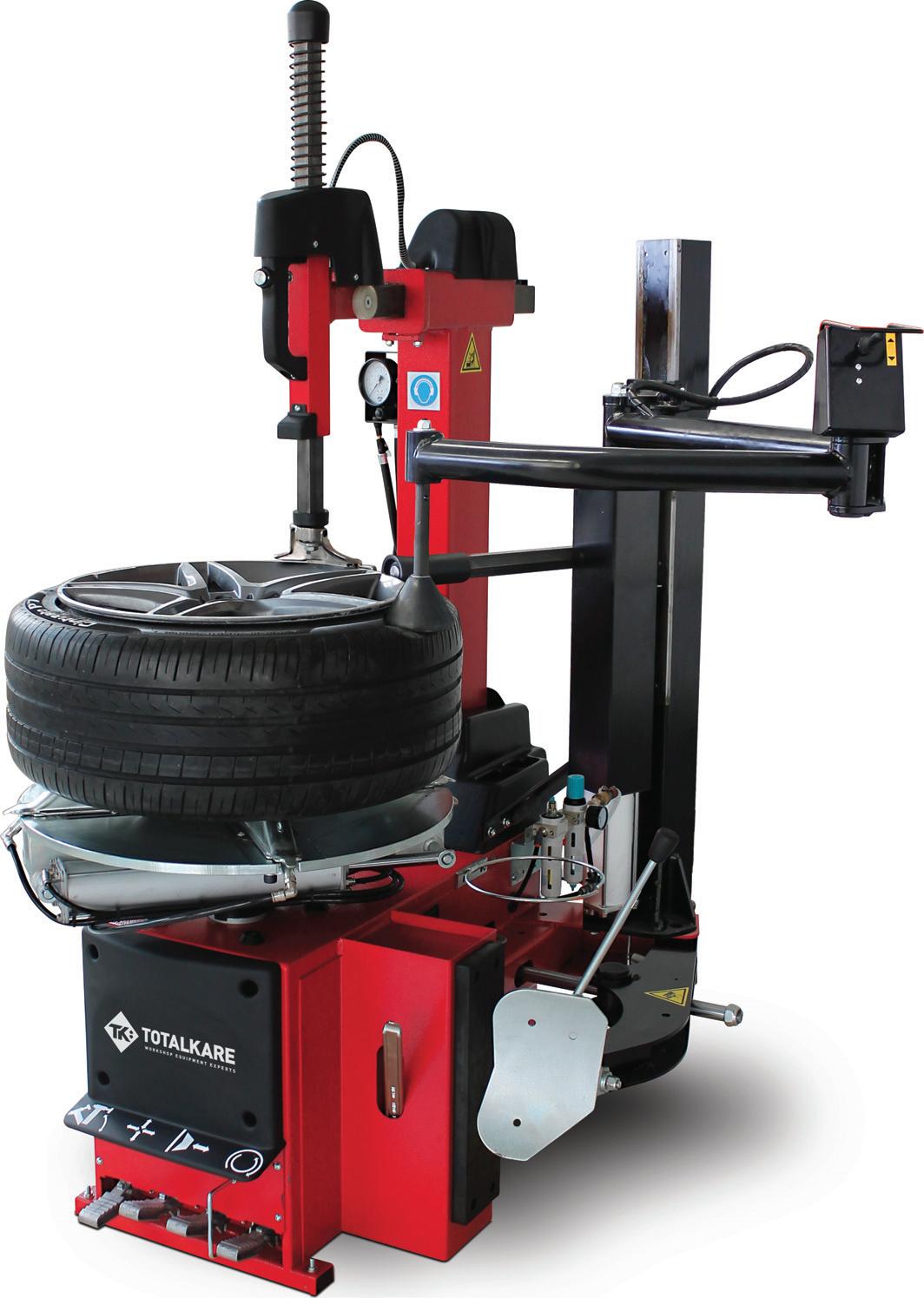 This automatic leverless tyre changer is ideal for cars and light commercial tyres. It works for wheel diameters up to 46in and rim diameters from 10 –24in, with max width 15in.