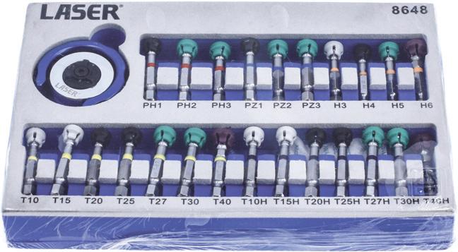Designed for accessing hard-to-reach fasteners, the swivel palm-grip, 72-tooth ratchet driver and bit set from Laser Tools is compact and shallow. Its blue anodisedaluminium grip-ring can swivel 90° for additional leverage when space allows. The ratchet driver accommodates any standard 1/4in shank screwdriver bits. The set also comes with 24 interchangeable bits, each with a colour-coded ring and an integral magnetic screw holder. The set comprises commonly used bits such as PzDrive (Pz1, Pz2 and Pz3), Phillips (Ph1, Ph2 and Ph3), hex (3, 4, 5 and 6mm), Star (suitable for Torx fixings T10, T15, T20, T25, T27, T30 and T40) and Tamperproof Torx bits (T10, T15, T20, T25, T27, T30 and T40). Each bit is designed with a quick-chuck feature, so they will also work with cordless drills or power screwdrivers.