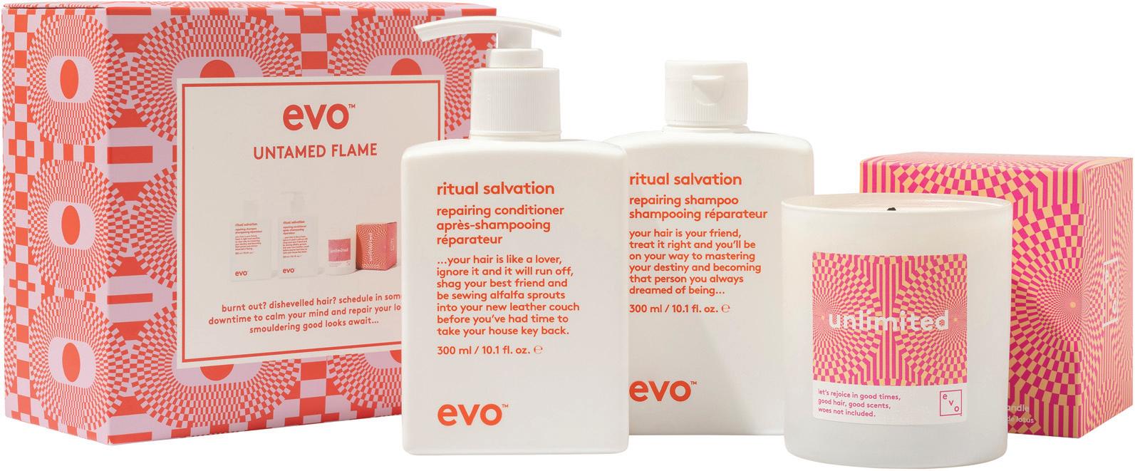 During a notoriously stressful season, evo wants to offer a quiet moment of reprieve. Containing shampoo, conditioner and a candle, the untamed flamegift pack contains all the ingredients for ‘good times, good hair and good scents’! With calming notes of sandalwood and lotus, the packs are available in both the hydrate or repair family. www.rdr.link/HBC021