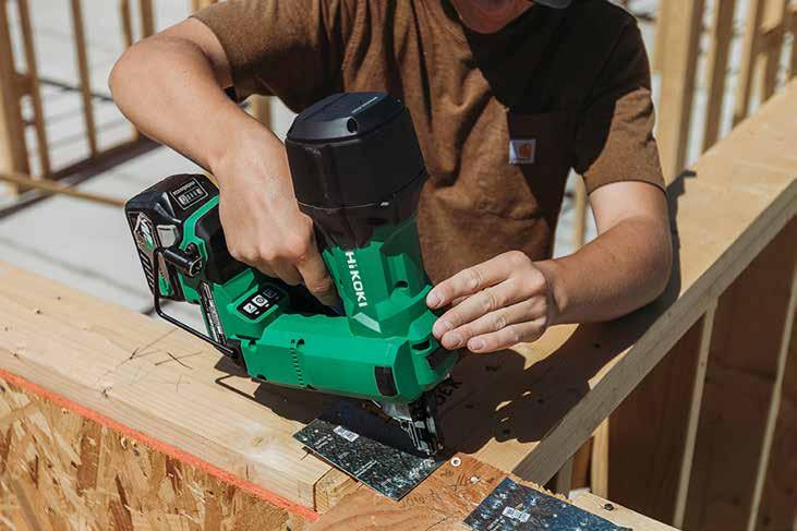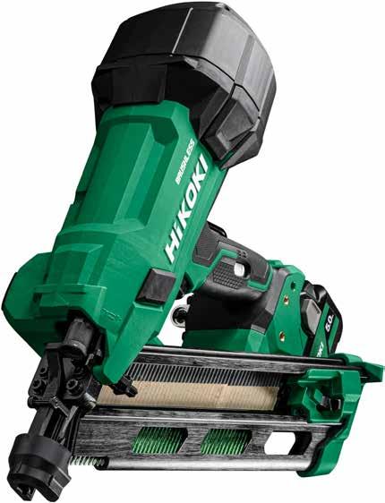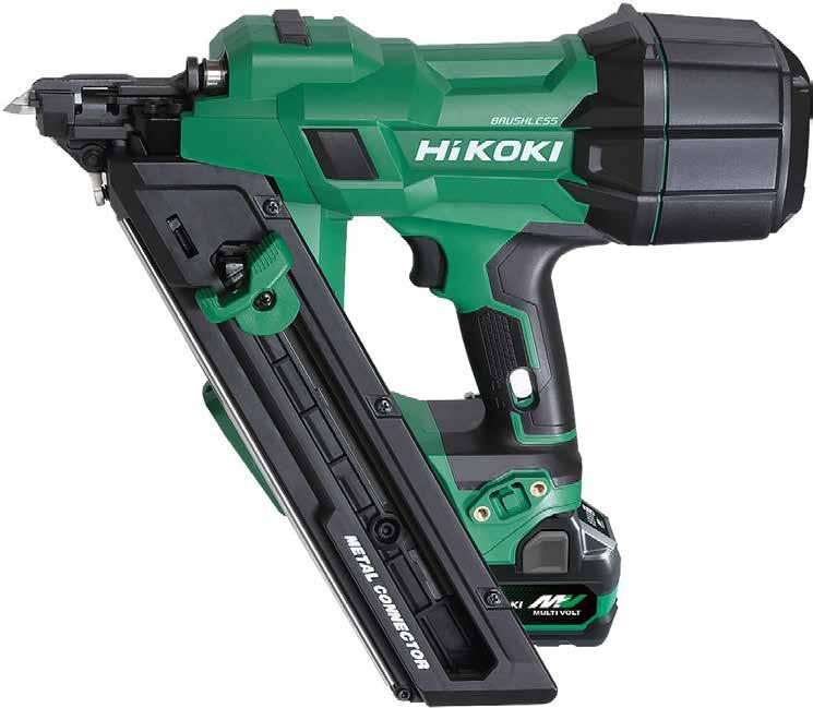 • HiKOKI Air Spring Drive System offers gasless, fume-free operation with stable performance and a smooth, pneumatic-like feel without the hassle and hazards of hoses or compressors.