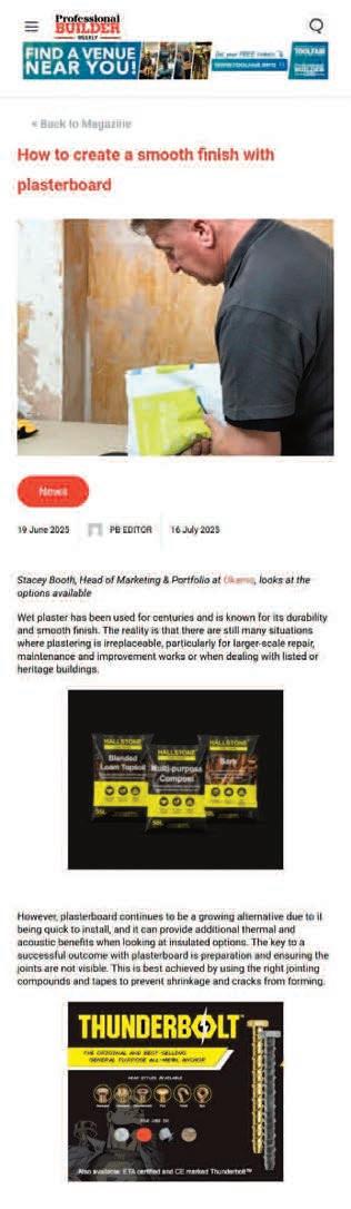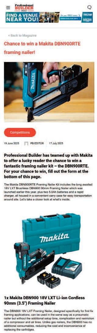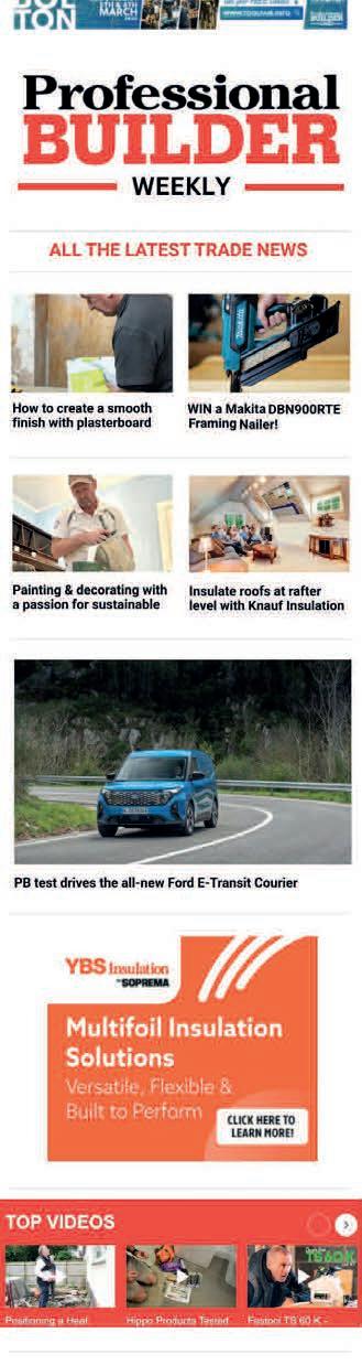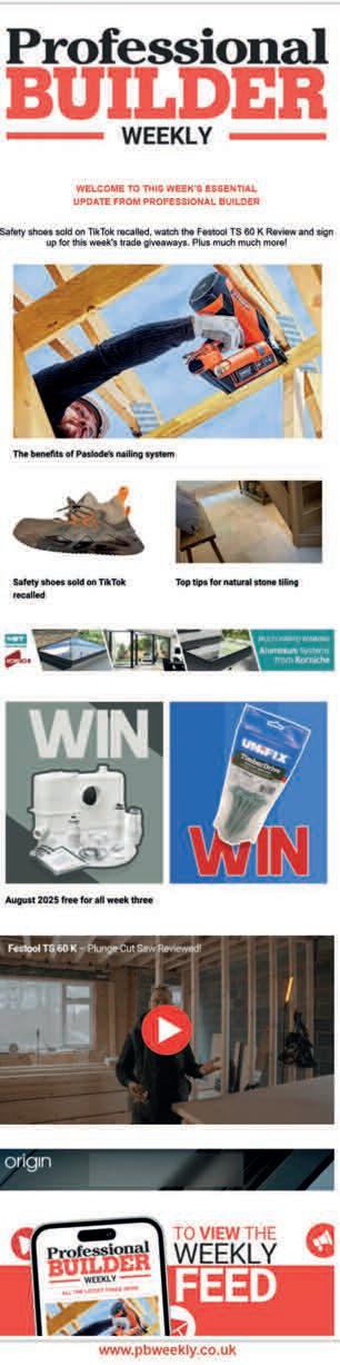 l Professional Builder is also delivered by email to 120,000 tradespeople every week. All digital content is also archived on the pbweekly.co.uk website.