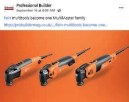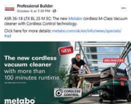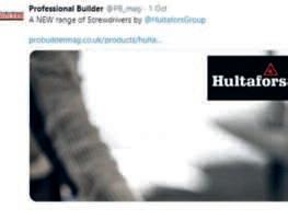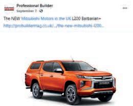 SPONSORED SOCIAL POSTS ARE AVAILABLE AT £250 EACH They can also form an integral part of a wider multi-platform package that offers an unrivalled reach to a targeted trade audience. Alongside print, online and email, Professional Builder engages on all social media channels: