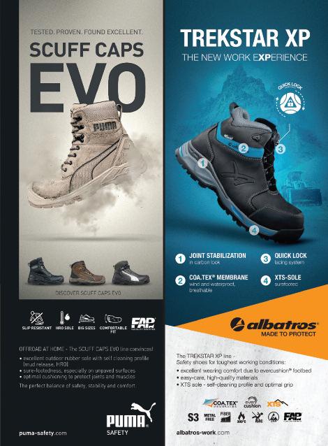 Quite appropriately for work shoes, what we have here is actually a pair of ads one for the Scuff Caps evo boot from the Puma Safety brand, and the second showing the Trekstar XP from the albatros marque
