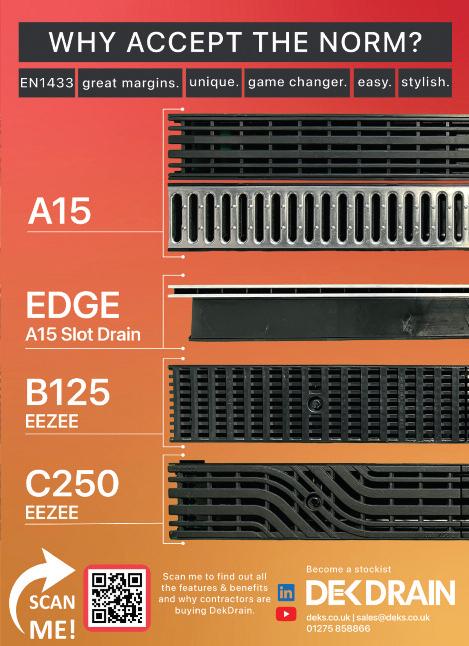 Showcasing the company ’ s bespoke drainage range including the a15, edge a15 Slot Drain, b125 eezee and the C250 eezee the advert highlights the breakthrough appeal of the brand’s stylish and expanding portfolio find out more about the ‘great margins’ on offer via www rdr link/map023