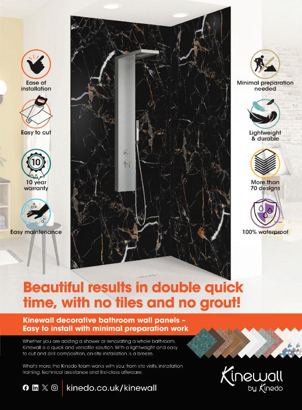 Offering ease of installation and requiring only minimal preparation, the lightweight Kinewall decorative bathroom wall panels are available in more than 70 designs to provide a versatile solution for any bathroom project