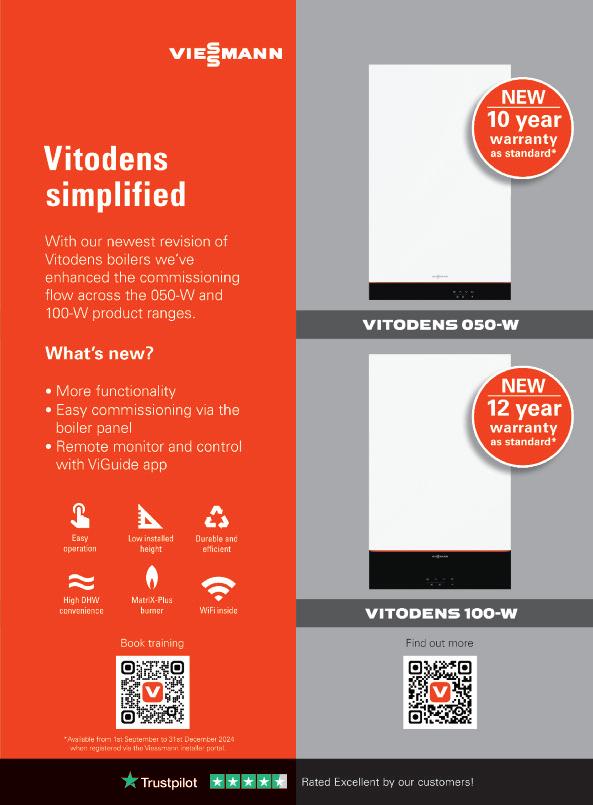 As the 2024 heating season gets underway, Viessmann has announced a “significant package of incentives for installers and merchants” of its most popular domestic and light commercial boilers, and heat pumps The Viessmann Simplified campaign is spearheaded by a new boiler commissioning process, designed with input from UK installers, alongside other incentives such as extended warranties and cashback redemption for installers and merchants alike Director of Sales Chris Johnson said: “Backed by product and integration technology that the market is hungry for, Viessmann is taking a very serious market approach this heating season with this targeted package of sales incentives and warranty extensions ” More details can be found via www.rdr.link/mbh055