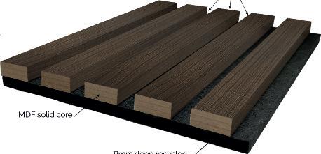 Featuring six popular finishes, the new acoustic wall panelling range from JB Kind has been launched to match with some of the company’s most popular laminate and oak veneer door finishes, including Oak, Walnut, Light grey, Dark grey and Black Straightforward to install and designed to provide acoustic sound absorption, each panel is comprised of solid MDF core slats, mou onto a fire-retardant backing made from recycled ma