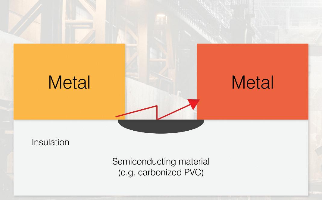 Parallel arcs may be formed by tight bending radius of cables, twisting and bending of flex (perhaps by being trapped under a door), crushing, other mechanical damage and tracking.