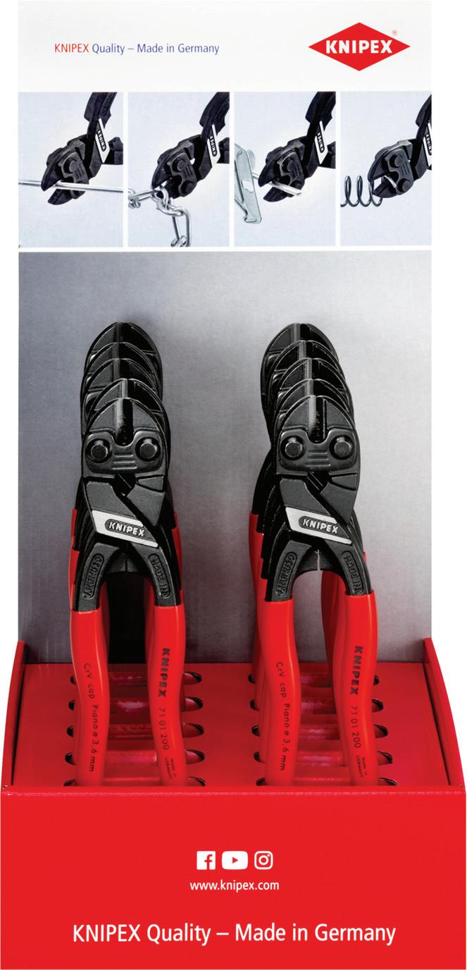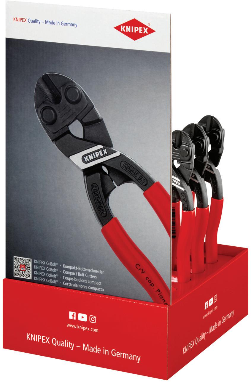 encouraging spontaneous purchases at the till area. The display is made from high quality cardboard, with a high gloss print and beautifully highlights the key features of selected products. This particular model showcases the 71 01 200 Knipex CoBolt compact bolt cutter, the small tool that makes a big impact.