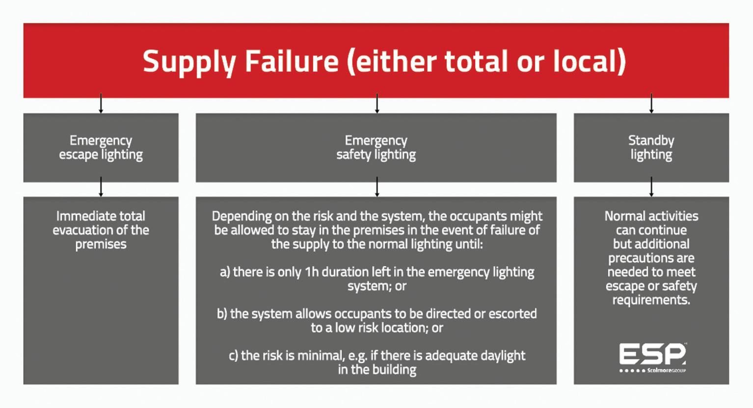 The requirements of legislation that apply to the design, installation, commissioning and maintenance of emergency lighting systems