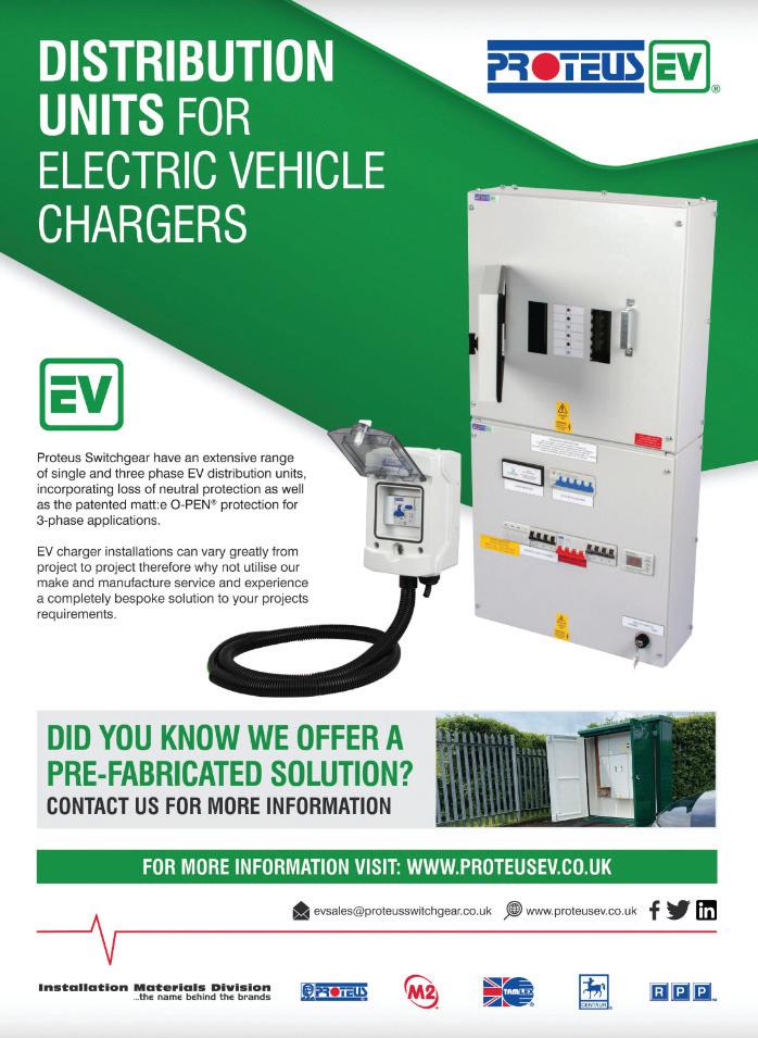 Featured as part of the brand’s current marketing campaign, Proteus Switchgear offers an extensive range of single and three phase EV distribution units, incorporating loss of neutral protection and O-PEN protection for 3-phase applications. These striking adverts, which are sure to catch the attention of electricians, offer more details about the features and benefits of the range, plus details of the bespoke services available for specific project requirements.