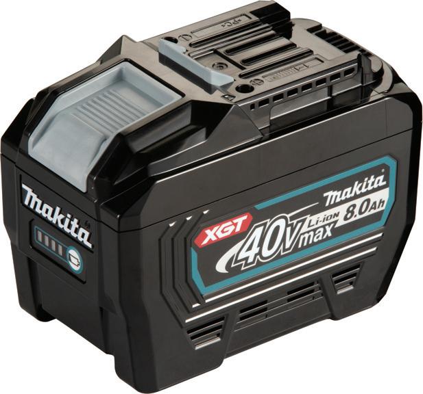 Makita has launched its largest capacity battery to date with an impressive 288 watthours of energy. The 8.0Ah BL4080F offers the longest runtime for its XGT products, meaning less downtime and improved productivity. Especially useful when used on higher drain XGT machines, this new battery pushes performance even harder. The 40VMax XGT BL4080F 8.0Ah battery has been designed to be both robust and highly intelligent. Equipped with 20 cells, it has a higher power output that enables Makita’s XGT tools to be pushed even harder and perform heavy duty, continuous operation over extended periods. Thanks to its heavy-duty and durable outer and cell casing, this product has a significantly improved impact resistance. The BL4080F is also IPX4 rated with a water and dust-resistant triple layer structure and an enhanced terminal structure to handle any job site condition.