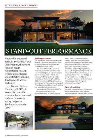 Verus Construction creates unique homes and distinctive housing developments across Yorkshire. Here, Damian Barker, Founder and CEO of Verus, discusses the standout bathrooms and kitchens in a recent, luxury project on Sandmoor Avenue in Leeds
