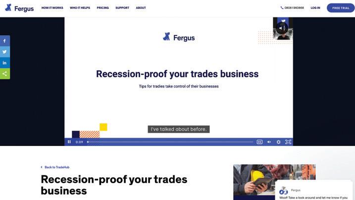 In this 45-minute webinar Dan Pollard, Founder of Fergus, the job management software designed to keep on top of company admin, is offering some tips for tradespeople to recession-proof their business – including checking cash flow, quick invoicing, strong leadership and great customer service. Fergus allows you to create quotes on the spot, send out invoices or chase late payment with automated SMS messaging. The cost and purchase of