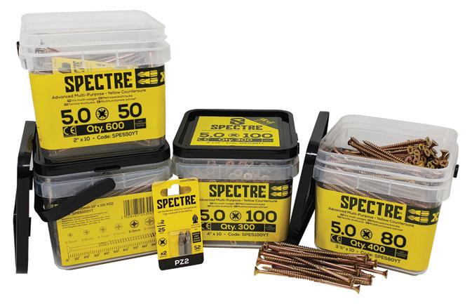 Spectre has launched new 100% recyclable tub packaging made with a minimum of 30% recycled plastic. The reusable tubs, crammed with the company’s Advanced Wood Screws, come in quantities of 300, 450, 600, 900, 1200 and 1400. Each tub also comes with a pack of two Spectre screwdriver bits. The move to tubs is part of an overall drive by Spectre and other ranges in the ForgeFix family of brands to reduce its carbon footprint.