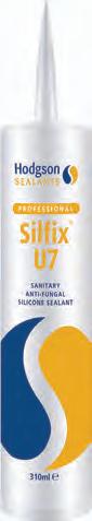 Silfix U7 from Hodgson Sealants has been designed for adhesion to most non-porous surfacesa solution to sealing around baths, sinks, urinals and ceramic tile joints to give a water-resistant, hygienic seal. The company says Silfix U7 has a fast cure and tack-free time and remains permanently flexible with a movement capability of ±25 with lasting performance and low shrinkage. It is available in translucent and white in 310ml cartridges.