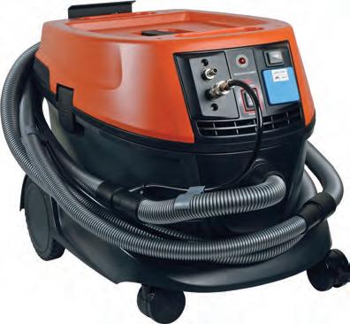 Additionally, the unit is fitted with a 3-pin British Standard electrical socket (1000W output) for use with power tools. The airpowered or electric power tools are plugged directly into the unit. Another feature is that the extractor unit can be switched between an automatic mode, which turns the vacuum on when the connected tool is being used and switches off 5 to 10 seconds after the tool has stopped running, and a manual mode where the vacuum runs continuously (for non-powered sanding).