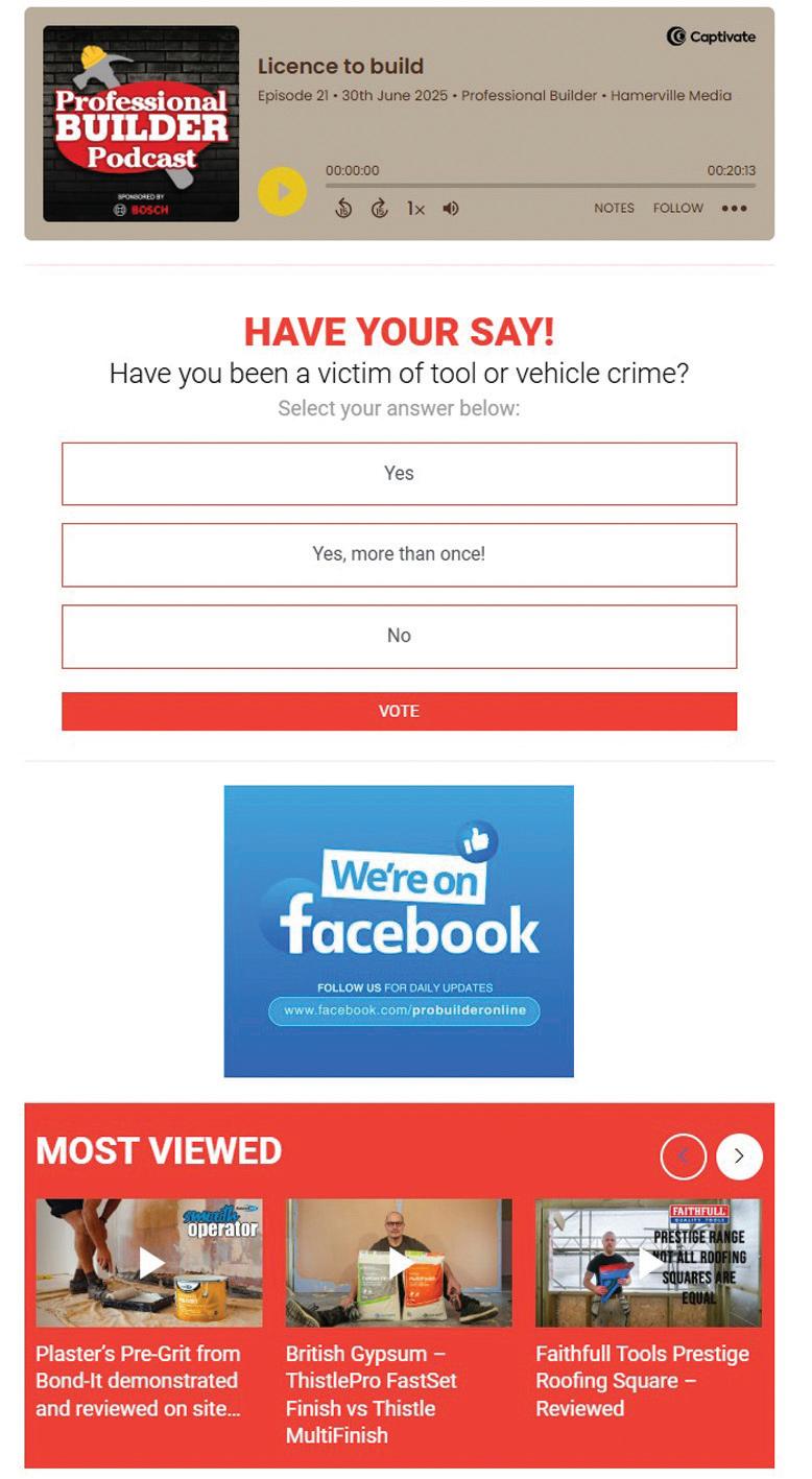 Professional Builder is excited to announce the launch of Professional Builder Weekly a brand-new mobile first digital platform designed with the UK’s trades in mind.