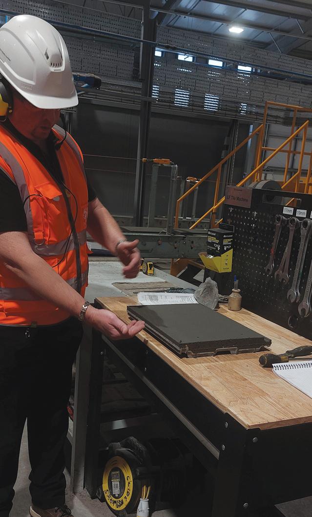 sustainability into every layer of its operations. This includes smart lighting, heat recovery systems for energy efficiency, a 10,000-litre rainwater harvesting system, and participation in The Pallet LOOP scheme to minimise pallet wood waste. The site’s highly skilled team completed extensive training to support advanced and sustainable concrete tile production. It’s an impressive show of force, and the size of the solar array on the, what would otherwise be unused, roof is absolutely immense.